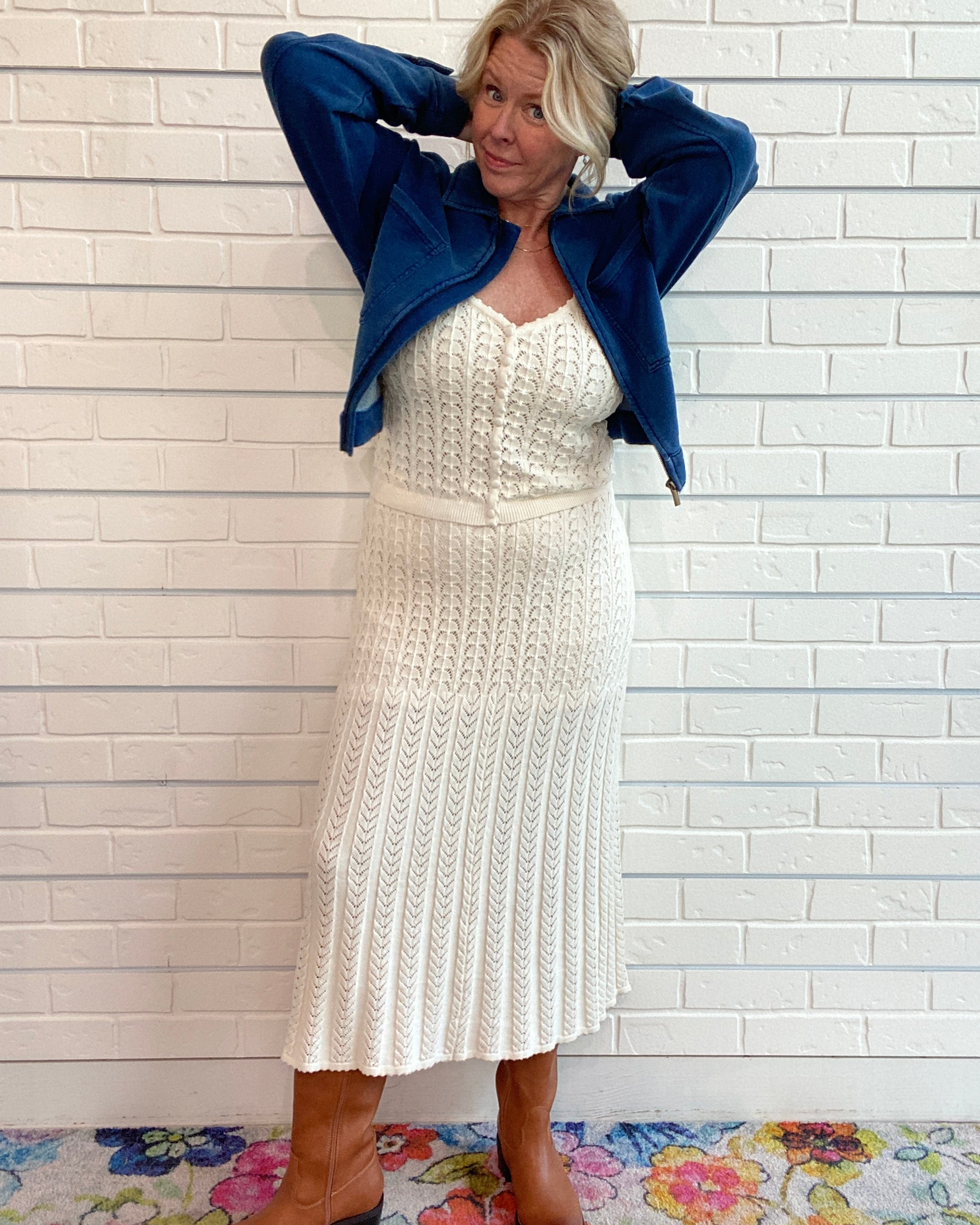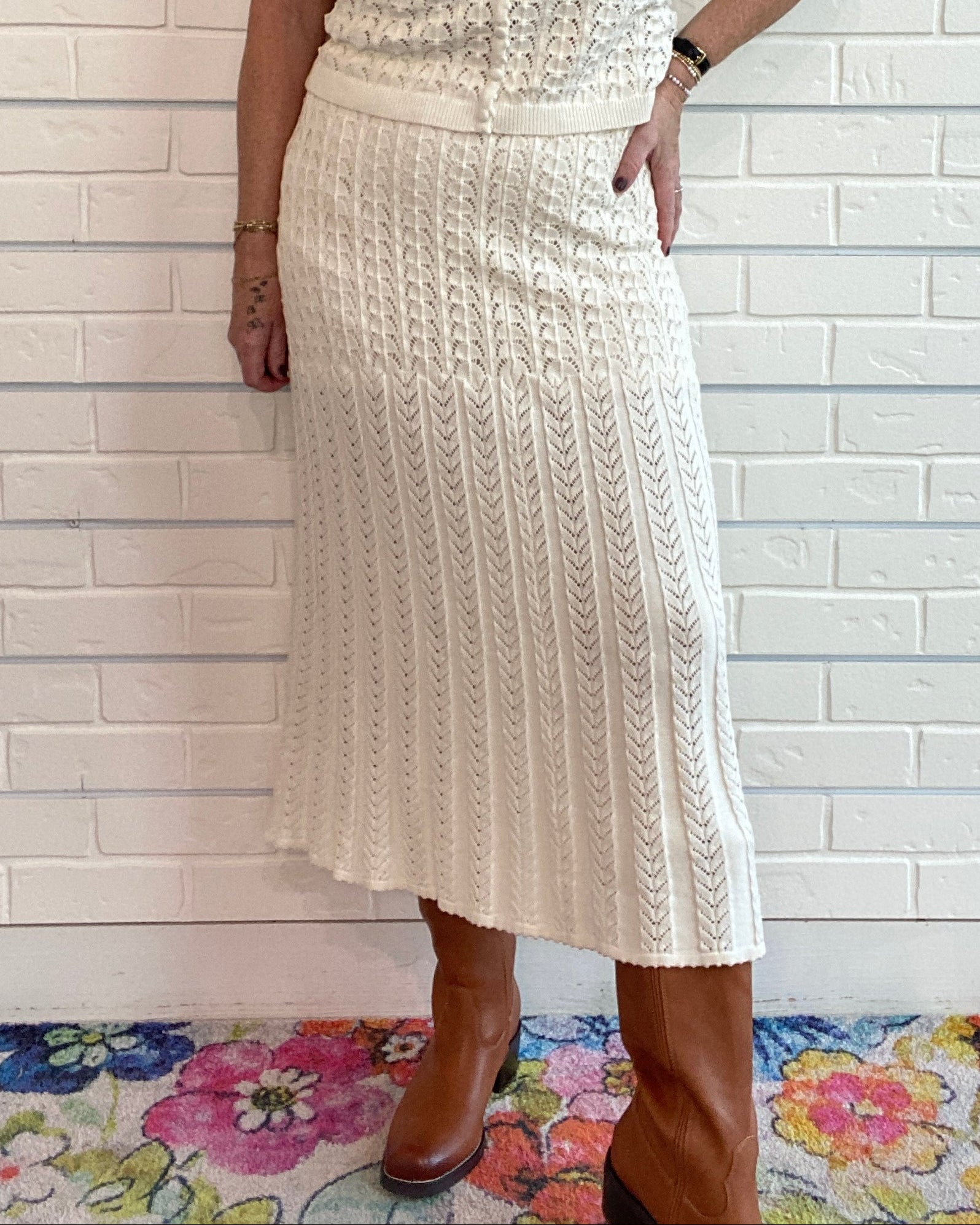 The Lexa Sweater Skirt by Z Supply is a cozy, high-rise maxi designed for effortless fall and winter style. Crafted from soft pointelle yarns, it features a lined interior for comfort and coverage, while the elastic waistband ensures a relaxed, flattering fit. Its lightweight texture and timeless silhouette make it perfect for pairing with oversized sweaters or fitted tops, creating a polished, layered look for both workdays and weekend outings.