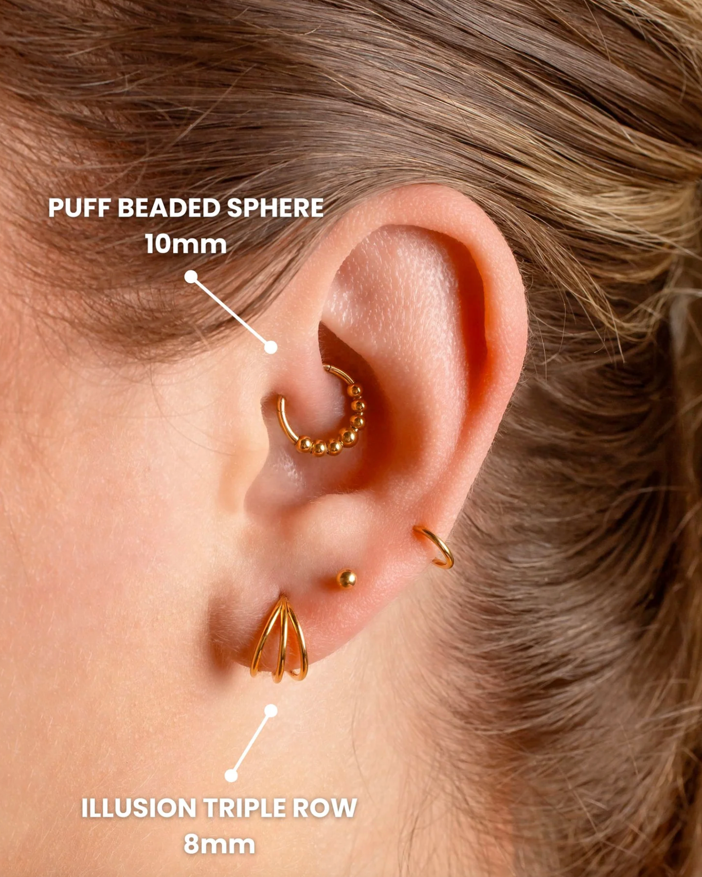 Introducing the perfect hoop - that's easy to open and close! Created with an invisible seam, our Illusion Triple Row hinged segment rings are infinitely useful for noses (septum, nostril) and ears (orbital, conch, cartilage, lobe, helix, tragus, and more) and add interest to any look.