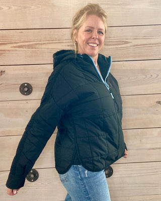 On Cloud Nine Puffer Hoodie | Black with Blue Accent