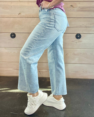 Ella Charcoal Wash Wide Cuffed Straight Leg