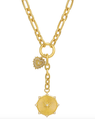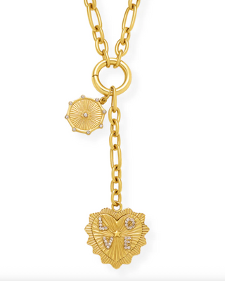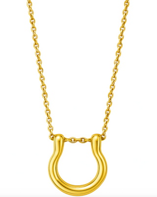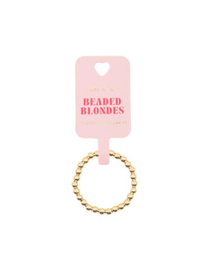 Gold beaded bracelet with a pink tag labeled 'Beaded Blondes' on a white background