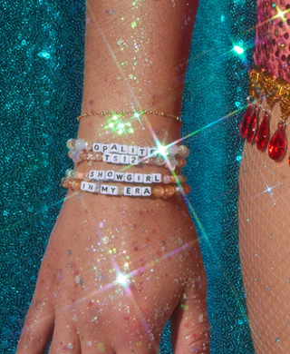 Colorful beaded bracelet with 'SUNSHINE' charm on a white background