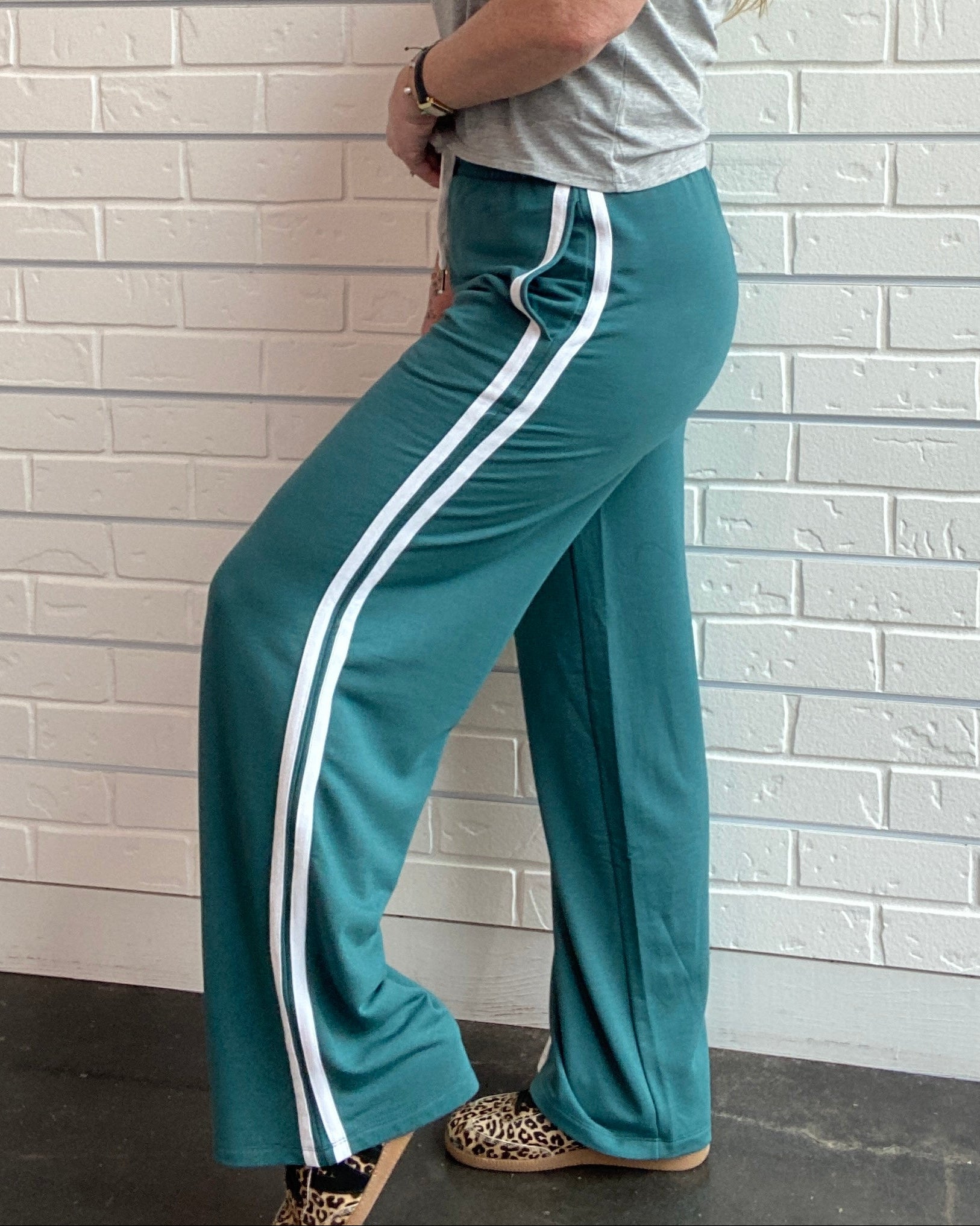Sandi Teal and White Track Pants | Ellipsis Boutique