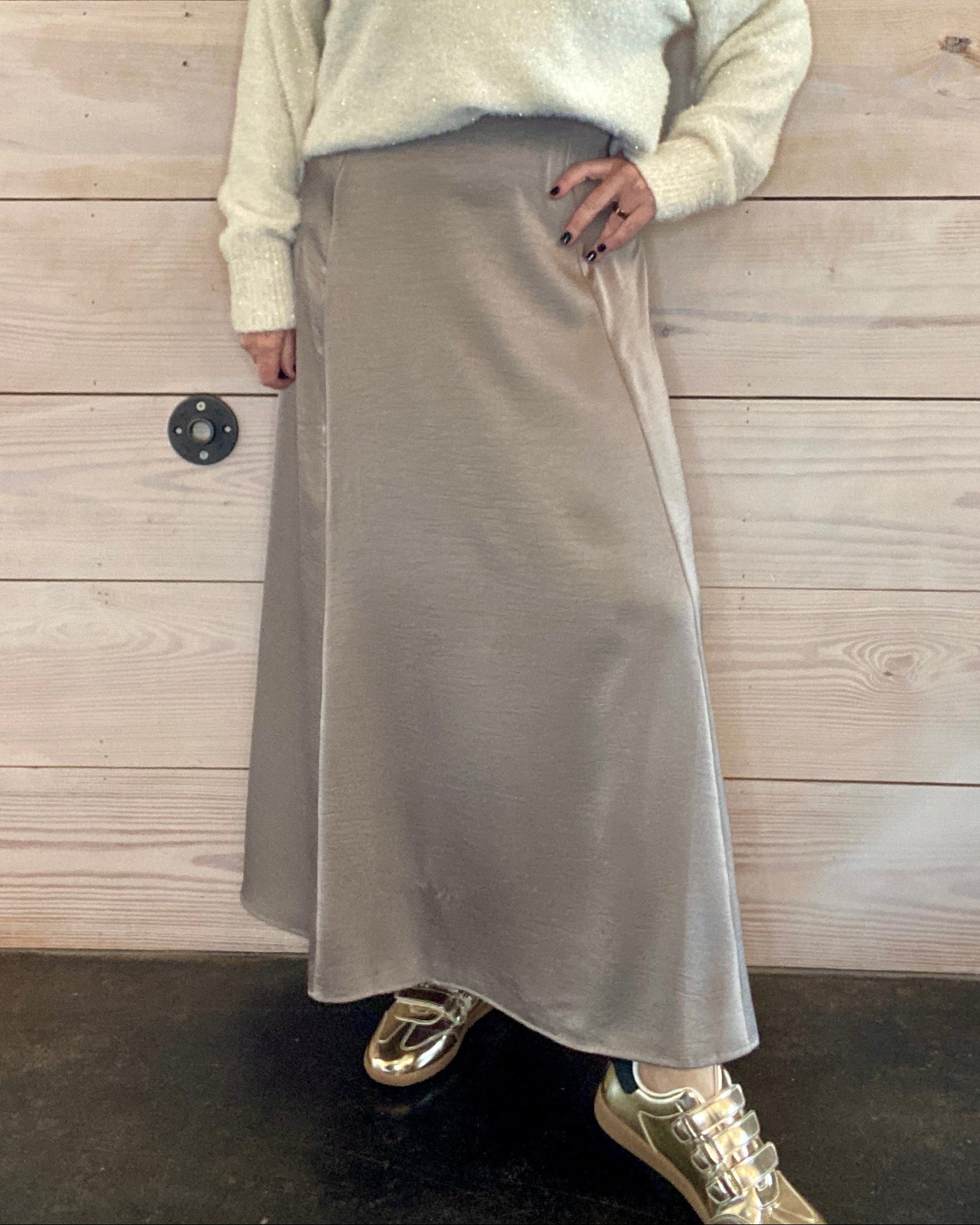 Elevate your everyday style with the Z Supply Northpointe Midi Skirt in Moonlight. Crafted from soft, luxe satin, this high-rise midi brings a modern yet timeless touch to any look. The smooth silhouette and invisible zip closure create a sleek finish - perfect for pairing with cozy sweaters or fitted tops this fall.