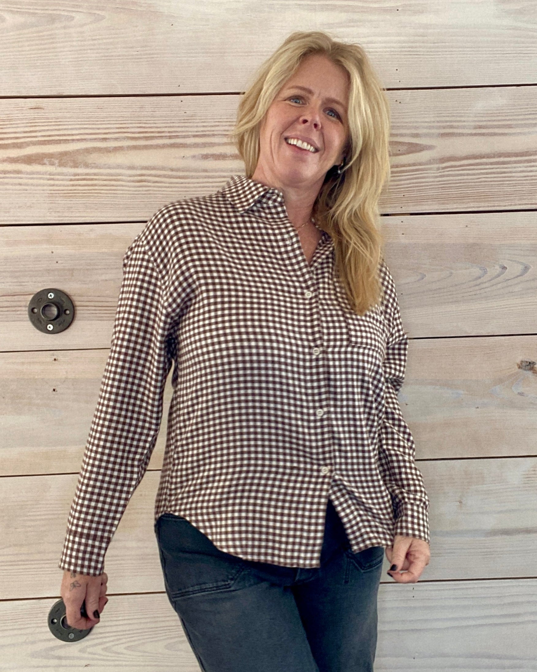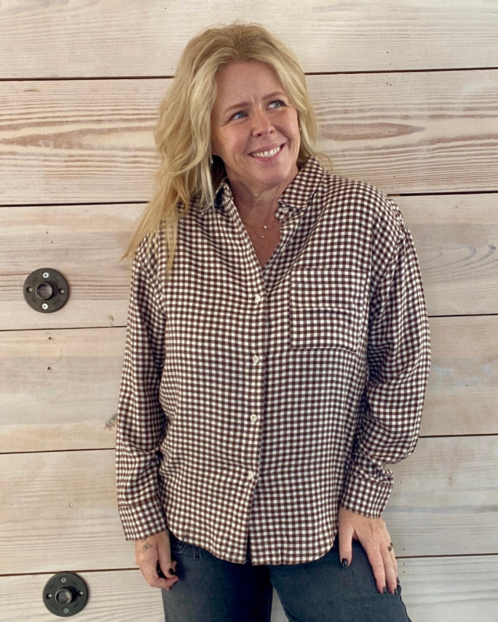 Z Supply River Plaid Button Up Top - Chocolate Cherry