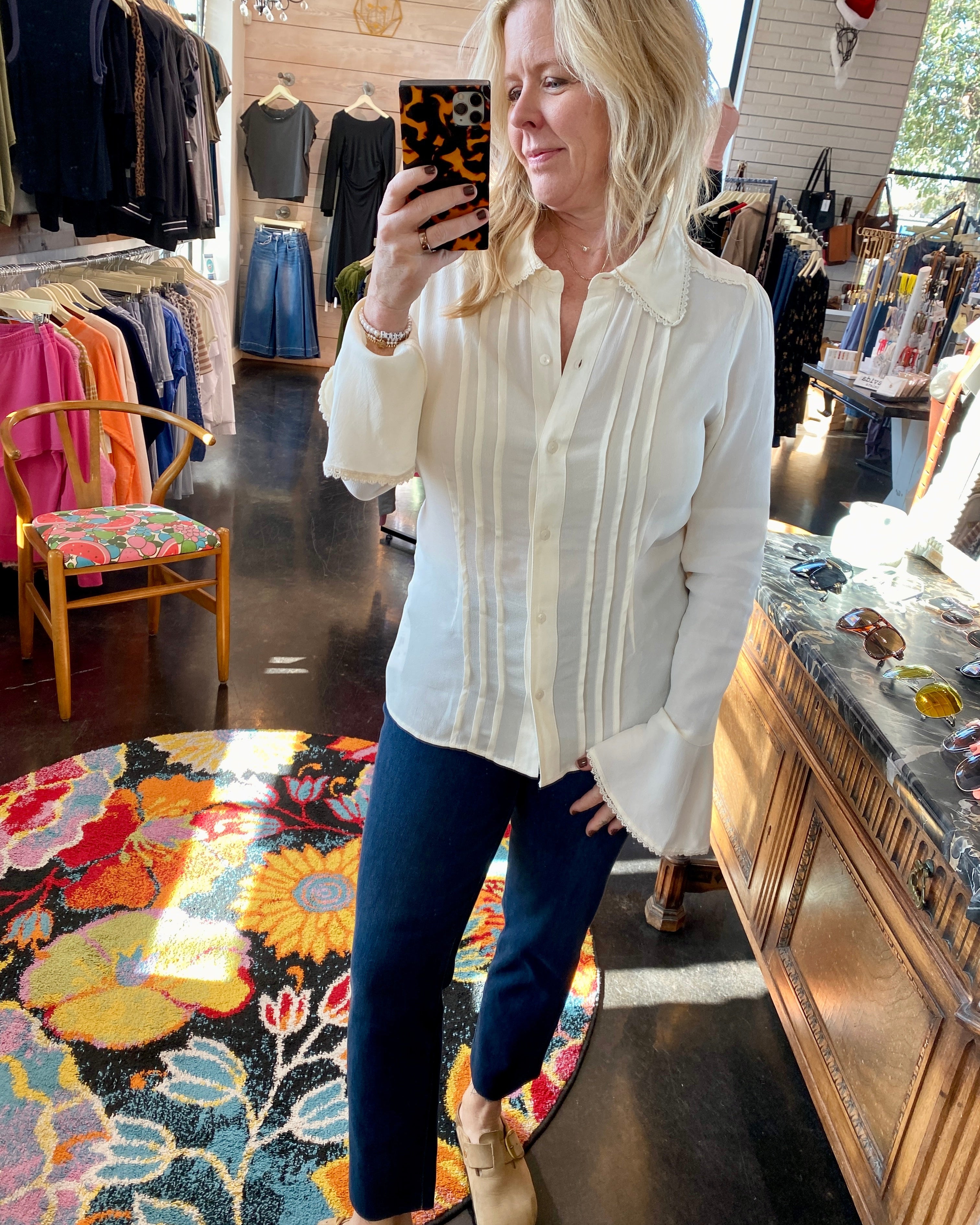 Free People Melrose Button Down Top | Flowy Embroidered Blouse – Ellipsis Boutique